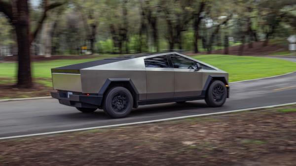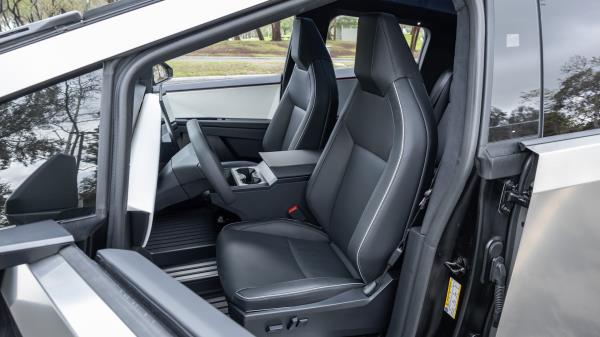 我们确实担心赛博云梯车的时间紧迫。注意到车轮上没有中心盖吗?这是因为特斯拉在向客户交付第一辆卡车后才发现七角形车轮罩会损坏轮胎侧壁。基础系列和差速锁附带的“终身”全自动驾驶功能也还没有准备好。特斯拉告诉车主,后者最终将通过无线软件更新激活。我们只能希望机械部分更完整。虽然从静态角度看,我们的卡车似乎组装得很好,但当我们低速转动方向盘时,我们注意到令人担忧的呻吟和嘎吱声,这可能是车轮拖拽刹车的作用,但仍然令人不安。
