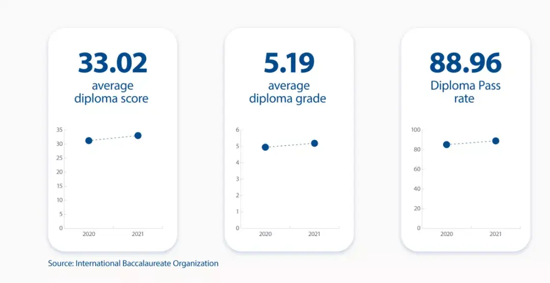 其中,一共有1155名学生获得满分,相较于去年的339人,增加了816人。除此之外,单科的平均分也从去年的4.95涨到5.19,而IB的文凭通过率也从85.18%提升到88.96。