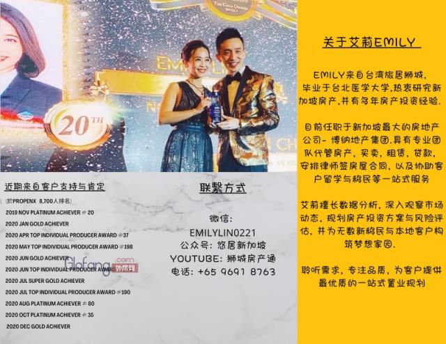 艾莉来自台湾旅居新加坡, 毕业于台北医学大学。热衷研究新加坡房地产, 并有多年的地产置业经验. 目前任职于新加坡最 大的房地产公司, 博纳产业集团。
