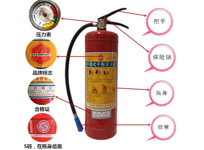 干粉可用于各种火灾。干燥的化学粉末通过在燃烧的材料上覆盖一层薄薄的灰尘,从而将燃料与空气中的氧气分离开来,从而扑灭大火。这种粉末还可以阻断火的化学反应,所以这些灭火器在灭火方面非常有效。压力是由储存在钢瓶内的气瓶产生的。它的力量将持续45秒,可以达到10 - 15英尺。