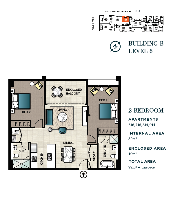在Viciniti,向北可眺望Cottonwood Reserve以及Lane Cove国家公园,朝东望向交织着人行步道和自行车道的Shrimpton Creek,还有不少户型俯瞰位于家门口的Wilga Park。