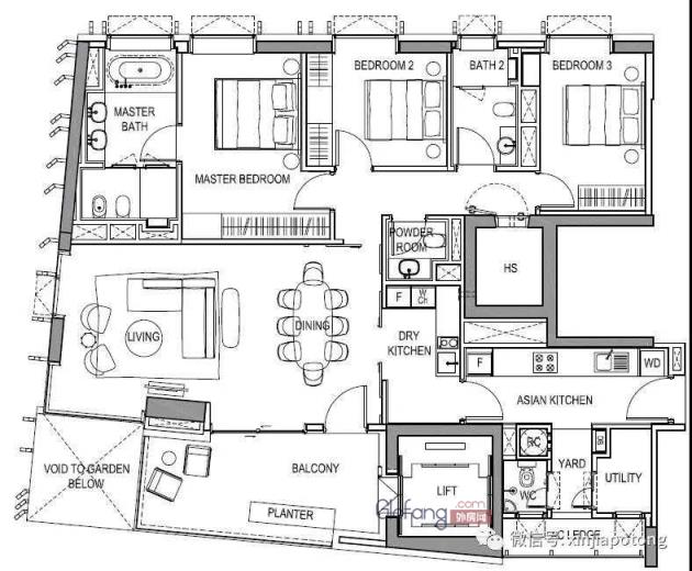 3房豪华型,面积165-173平方米,每个卧室都很大,主卧带浴缸,带大阳台,厨房分为干湿两区,私人电梯直接入户,价格650万新币起