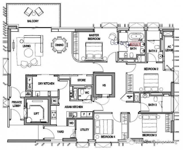 4房豪华型,面积210平方米,每个卧室都很大,主卧带大浴缸,厨房分为干湿两区,带保姆房,私人电梯直接入户价格770.2万新币起