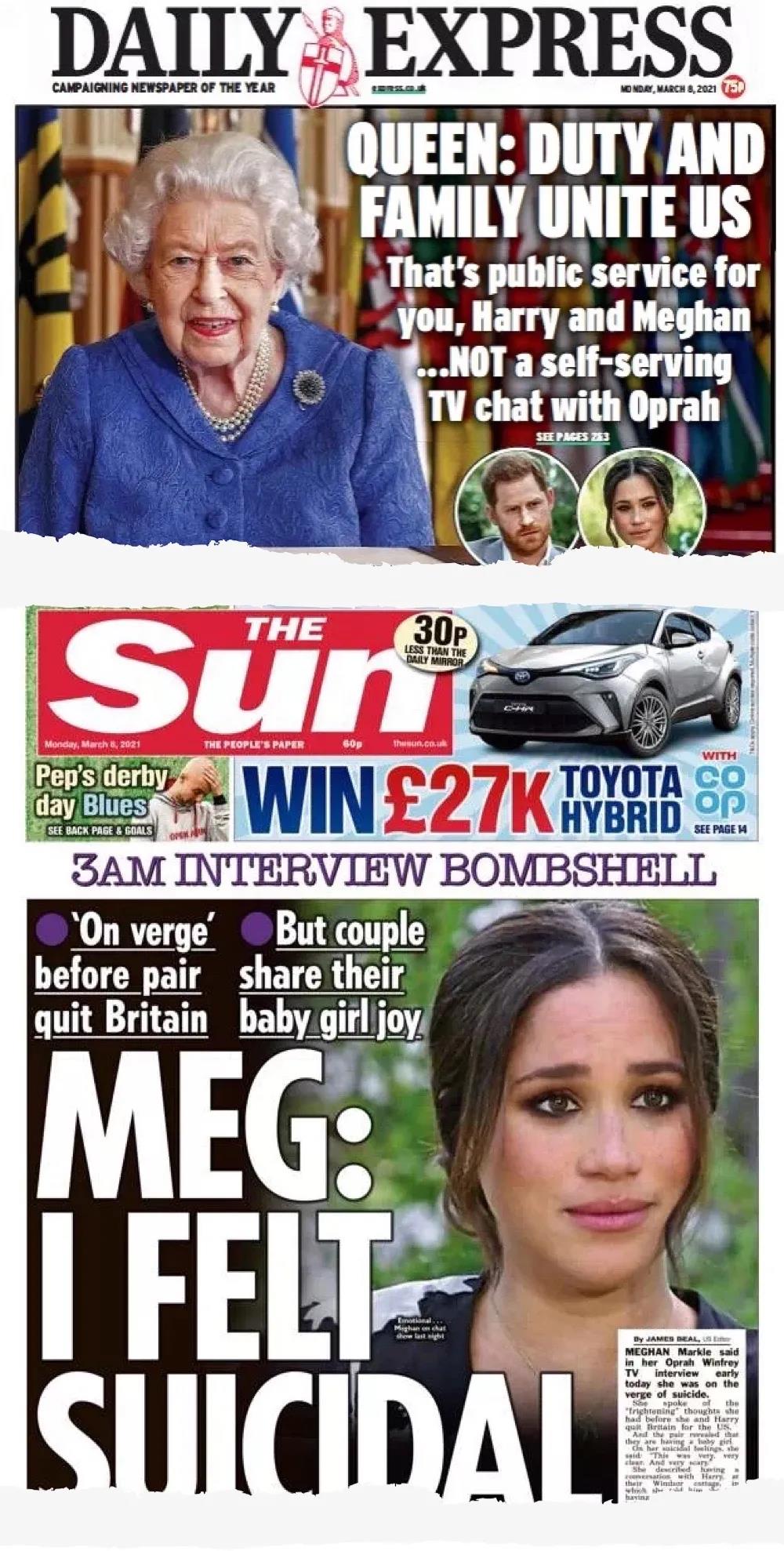 内容播出后震惊世界,哈里夫妇嘴上说着要远离王室,但仿佛又一直以王室编外成员的身份活跃在大众视野,以“王室”“女王”为话题博取热度。