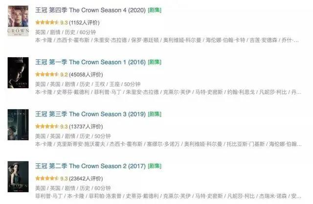 2016年,一部名为《王冠》的历史系列剧在Netflix平台播出。该剧以伊丽莎白二世为中心,讲述了她从1952年登基成为女王之后,在个人、政治等领域发生的故事,目前已播出四季,均收获超过9.0的高分。