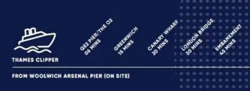 如果想要尝试水上交通方式,不妨尝试从皇家水岸步行3分钟,到达Woolwich Arsenal码头出发,乘坐伦敦泰晤士河通勤快艇,首站即可到达容纳20000名观众的世界级文化演出与体育赛事胜地——O2。