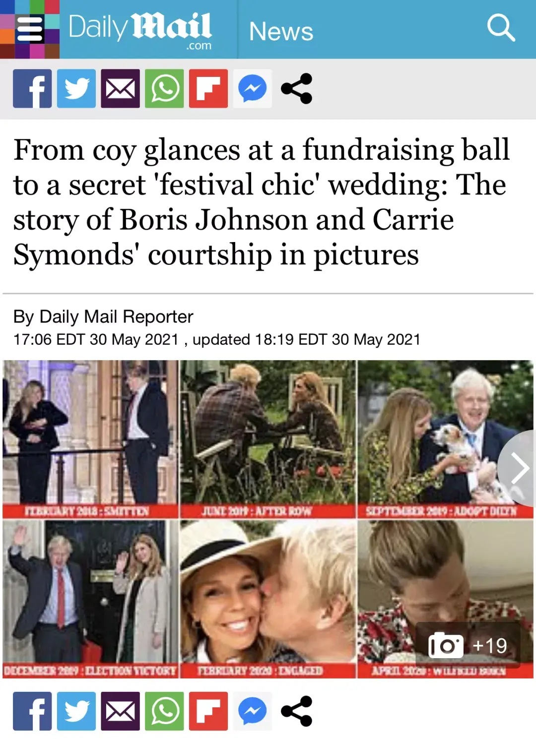 鲍里斯是史上第二位在任期间结婚的首相,加上他与凯莉是第三段婚姻,有英媒以图文并貌的模式向大家详细阐述了约翰逊夫妇从相识到相知,最后携手走进婚姻殿堂的全过程。