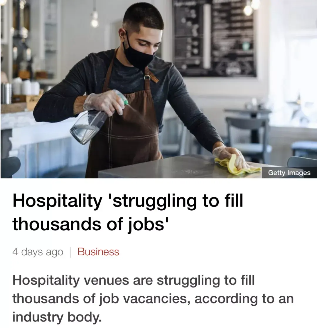 英国新冠疫情局势逐渐明朗,但部分英国行业,尤其餐饮服务业却陷入“招工难”困境。
