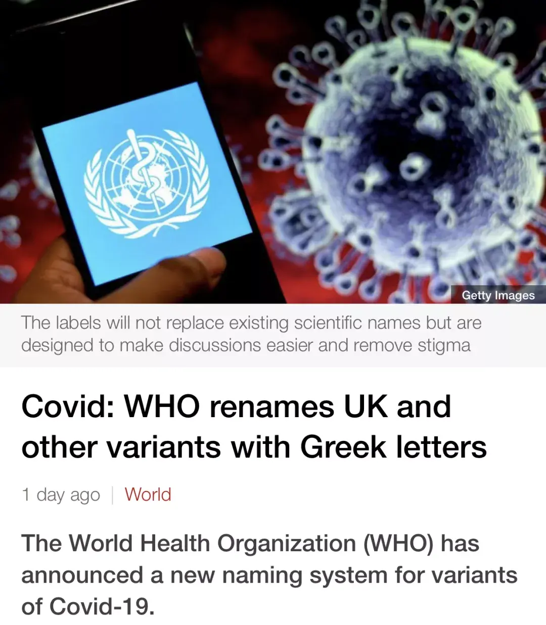 世界卫生组织宣布新的新冠变种病毒命名系统