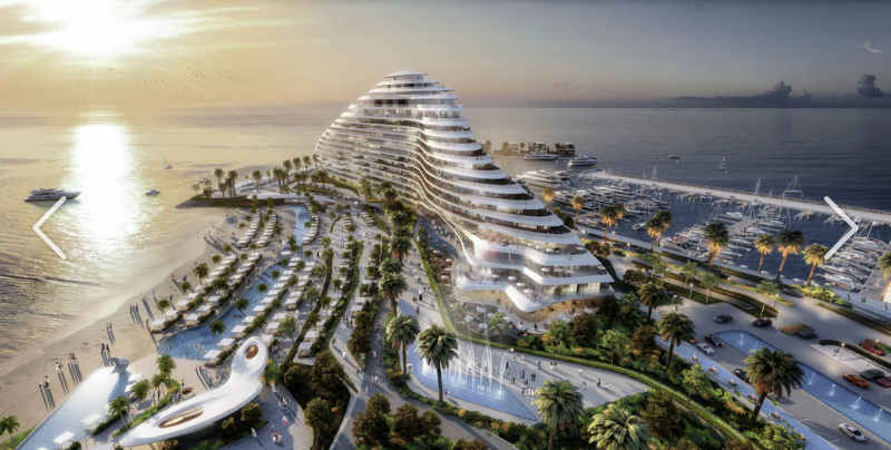 一个拥有 128 个泊位的高级游艇俱乐部和码头、九栋高端别墅以及一个带无边泳池和私人海滩的宽敞度假村。