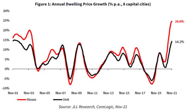 尽管澳大利亚公寓价格在截至11月的一年里强劲上涨了14.2%,但仲量联行说,这仅是独立住宅价格涨幅的一半左右。