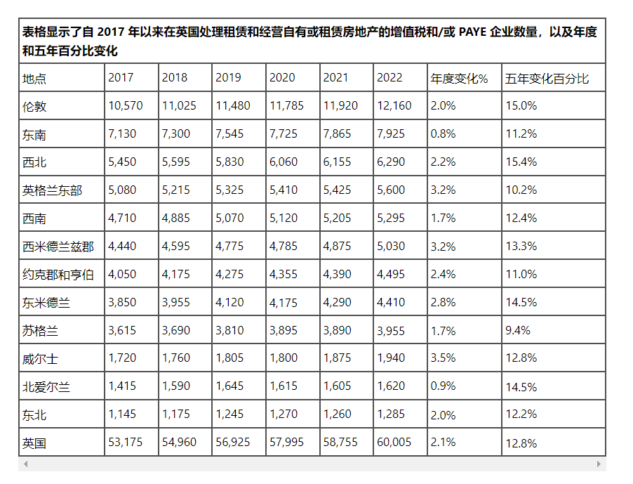市场分析表明,尽管政府尽最大努力阻止对该行业的投资,但在过去一年中,在英国住宅和商业租赁行业内运营的增值税和/或 PAYE 企业数量增长了 2.1%。