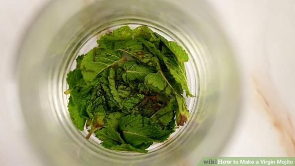 将薄荷放入不会破裂的厚而结实的玻璃杯底部。你也可以加糖,因为粗糙的质地可以帮助搅拌。确保你使用的玻璃杯不是薄的或易碎的,否则它会在这个过程中破裂。一定要把茎上的叶子去掉,因为这些叶子也会给饮料带来苦味。